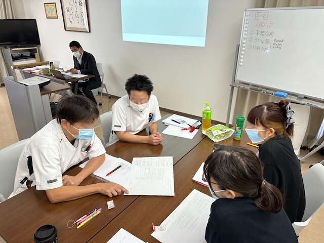 その後、事務長から参加者へ返却してもらい、更に今回の研修から4ヶ月目後全体の振り返りとして完成研修を実施します。